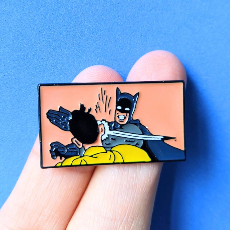 Para nuestros amigos que necesitan entrar en razón, este pin que muestra a Batman 🦇 dándole una bofetada a Robin es imprescindible.