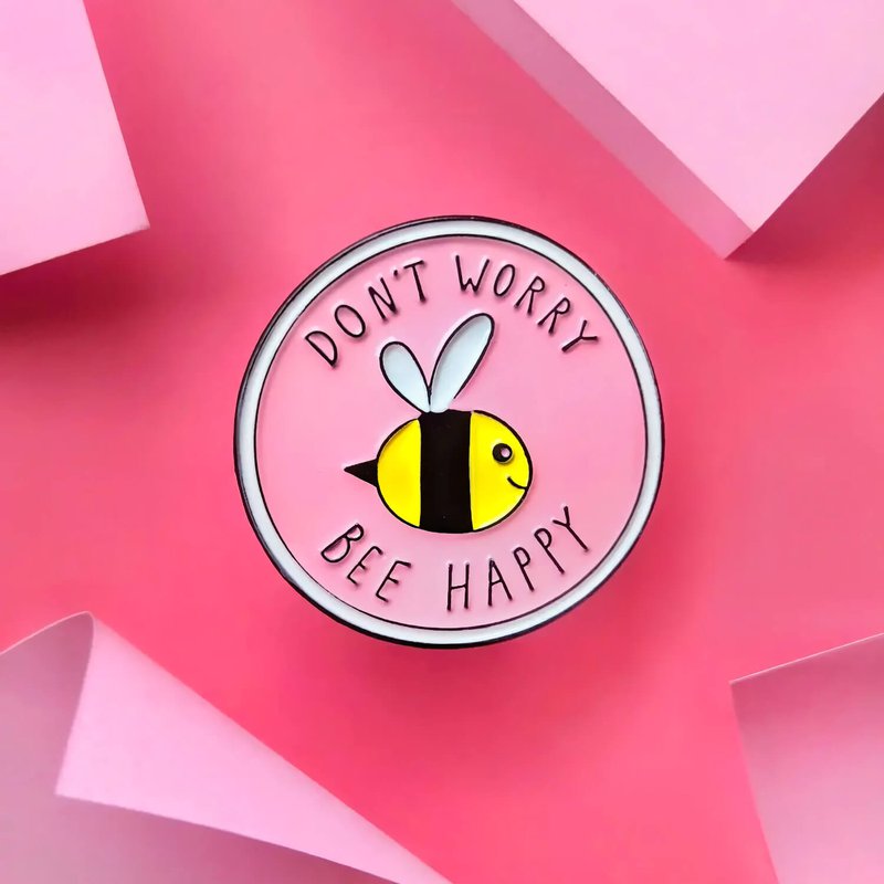 Lleva una sonrisa a donde vayas con nuestro pin metálico "Don't Worry, Bee Happy" 🐝✨. Este encantador diseño presenta una alegre abeja acompañada del mensaje positivo "Don't worry, bee happy". Perfecto para recordarte a mantener una actitud positiva y disfrutar de las pequeñas cosas de la vida.