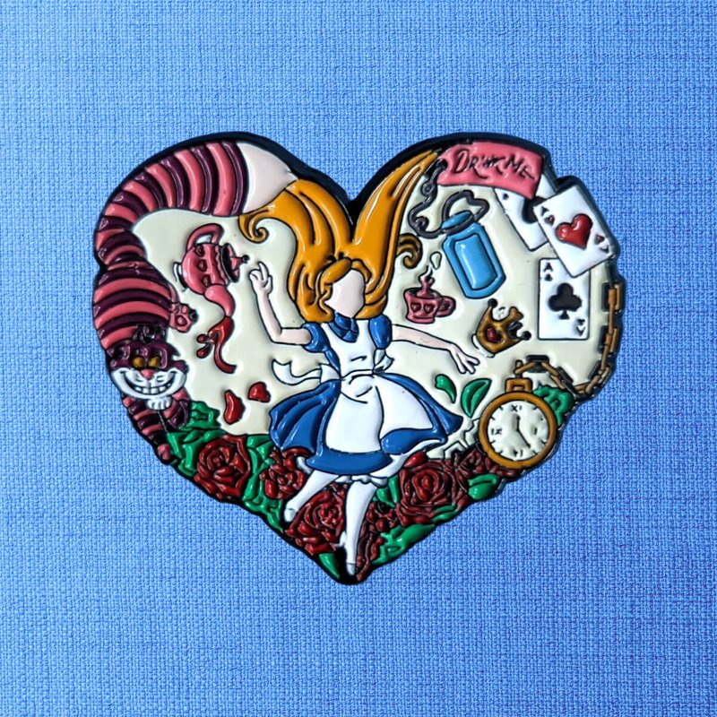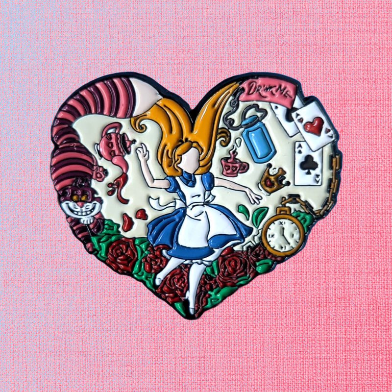 Sumérgete en el País de las Maravillas con este encantador pin metálico esmaltado 🌸✨. Con detalles de cartas, flores, la tetera, el gato de Cheshire y un reloj, ¡es el accesorio perfecto para cualquier amante de Alicia! Añade un toque mágico a tu atuendo y déjate llevar por la fantasía. ¿Te atreves a seguir al Conejo Blanco? 🕰️🫖