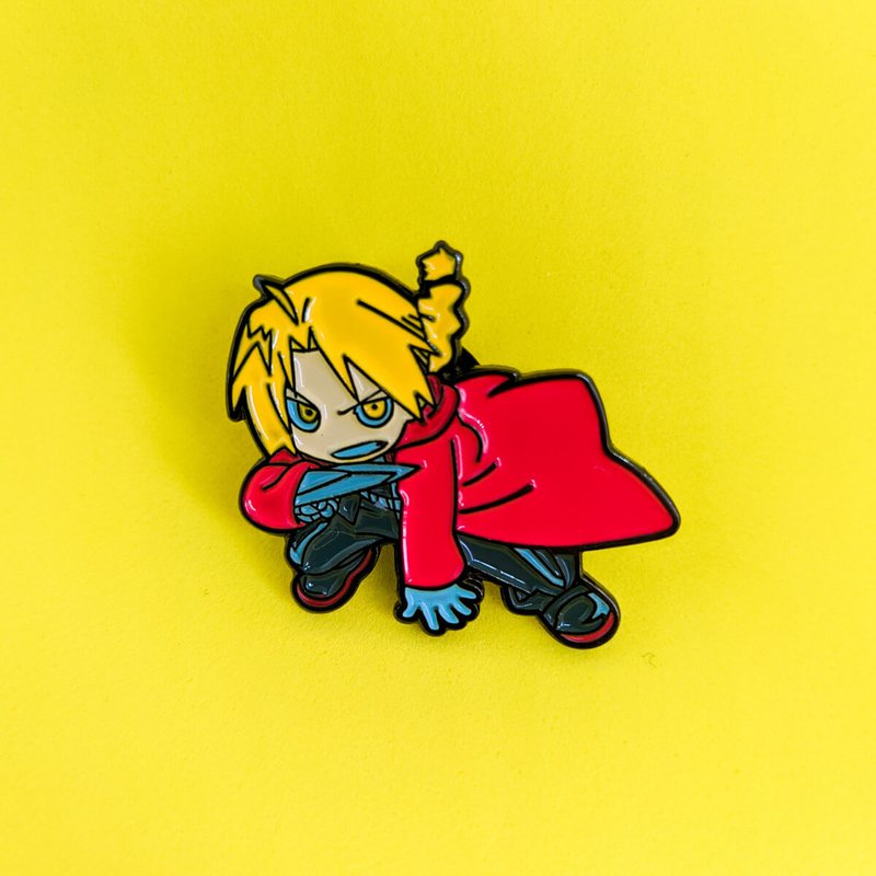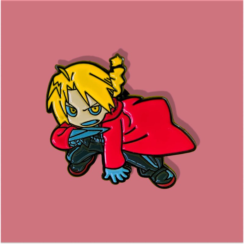 Pin metálico de Edward Elric, el famoso alquimista de acero. Llegó a Kipin para mostrarnos los principios del intercambio equivalente.
